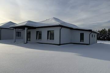 Современный одноэтажный дом для комфортной семейной жизни в закрытом коттеджном посёлке с развитой инфраструктурой и удобным выездом в город.