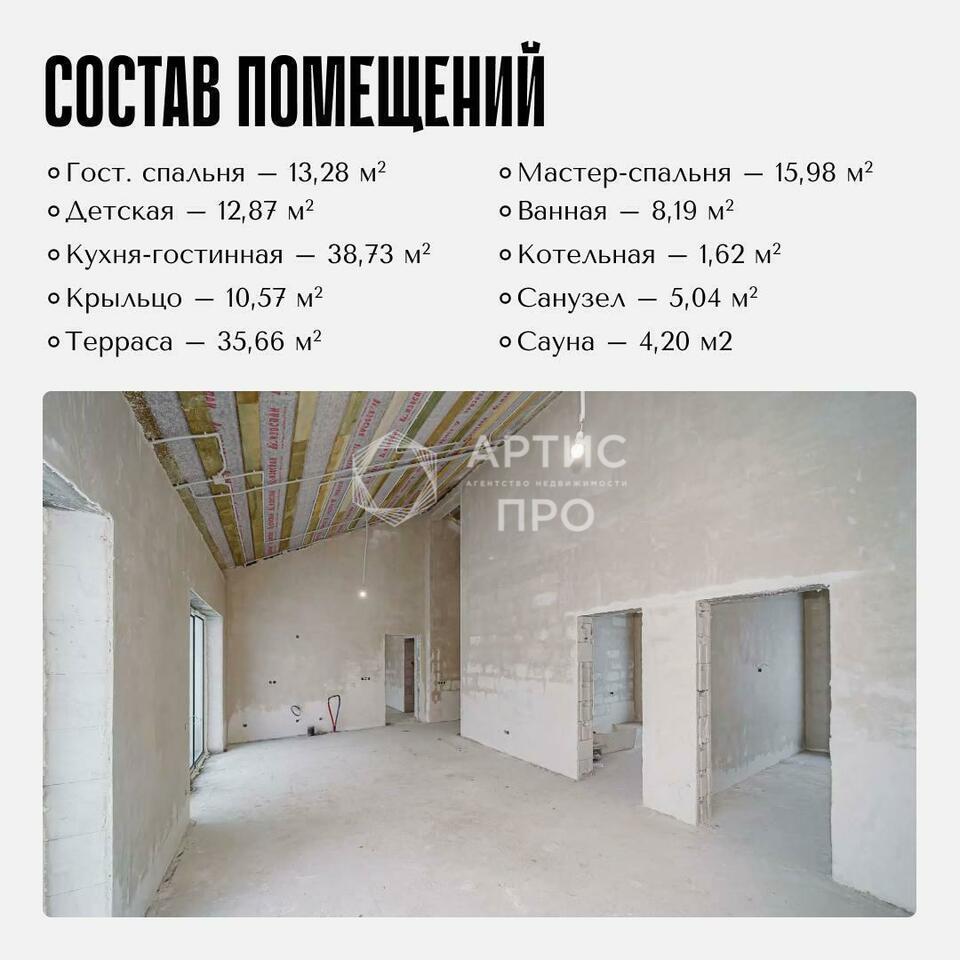Дом 180 м² с потолками 5,5 м, сауной и террасой в КП Кадниково